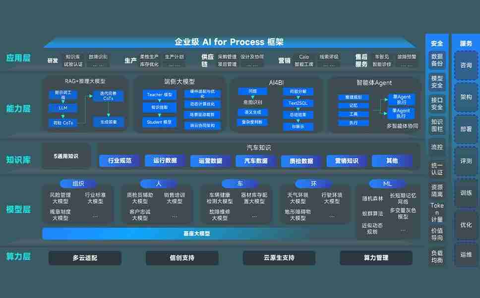 AG尊龙问学智车解决方案是一套基于AI技术的汽车行业智能化系统,,,,覆盖从底层算力到顶层AI应用的全栈方案。。方案由算力层、、、模型层和应用层组成:算力层,,,,方案支持多种一体机配置,,具备云端灵活部署、、多云适配以及动态优化计算资源的能力;模型层,,,AG尊龙问学平台版提供了企业级AI应用一站式构建与管理平台,,,,支持基于后训练强化技术的汽车企业专属模型的训练、、、、评测和运营;应用层,,,,AG尊龙问学DeepSeek版提供包括超级员工、、、、智能招采、、智能营销、、、智能客服、、、AI for BI等一系列解决方案,,,可助力汽车行业实现数字化转型,,,,让管理更智能、、、响应更敏捷。。